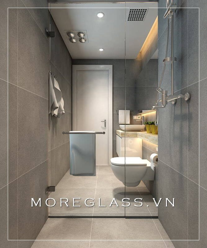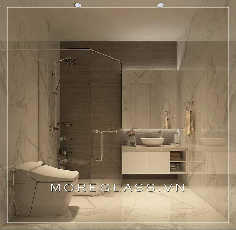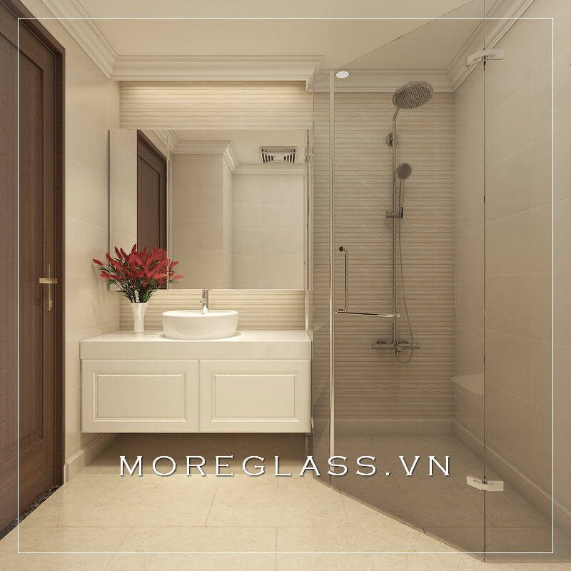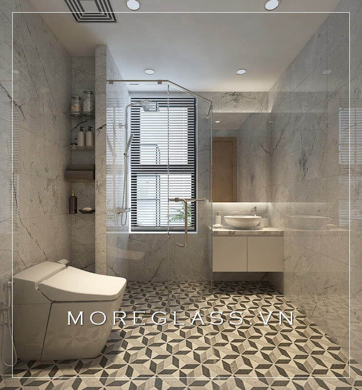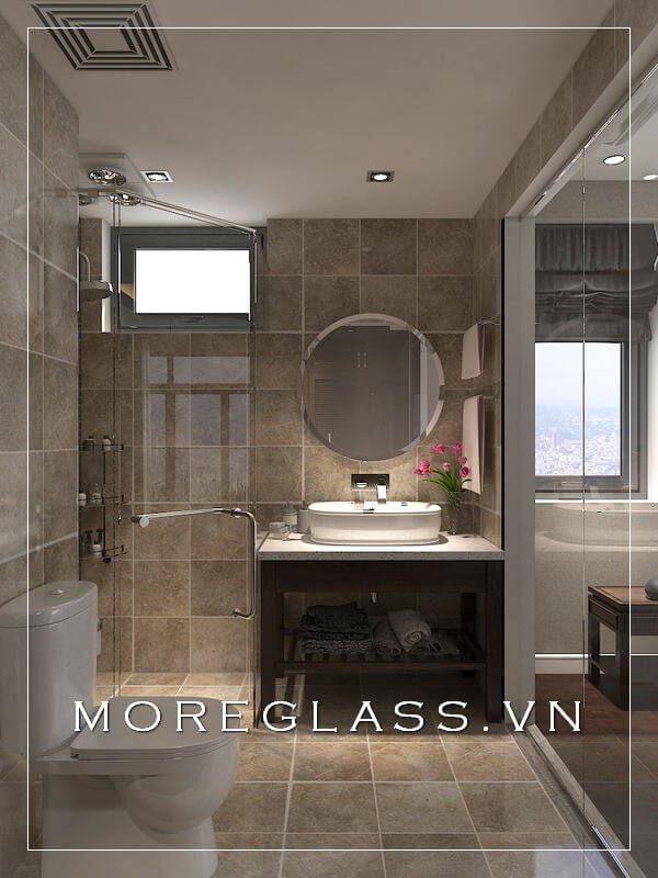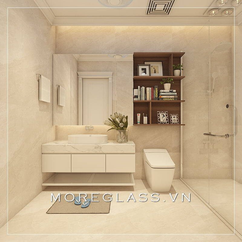 Mẫu phòng tắm chung cư bằng kính cường lực sang trọng tiện nghi.