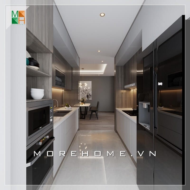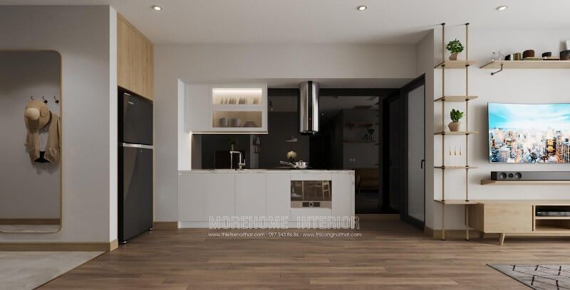 Thiết kế nội thất phòng bếp chung cư hiện đại, đơn giản và tiện nghi