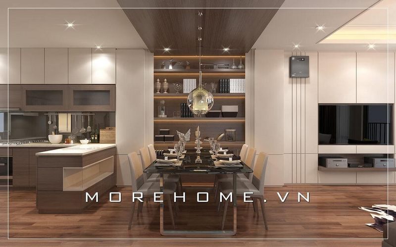 Thiết kế nội thất phòng ăn liền bếp hiện đại, đơn giản và tiện nghi cho nhà chung cư