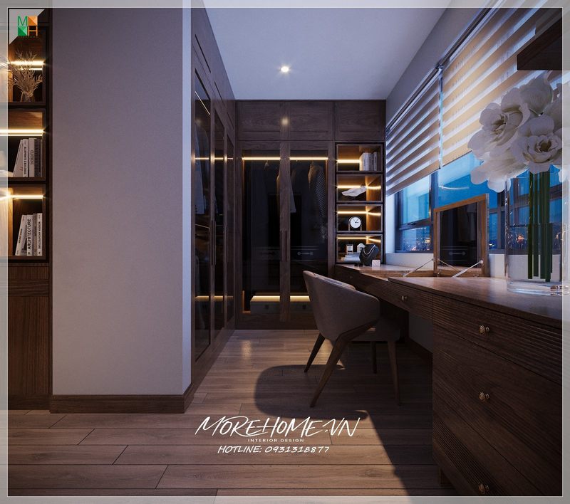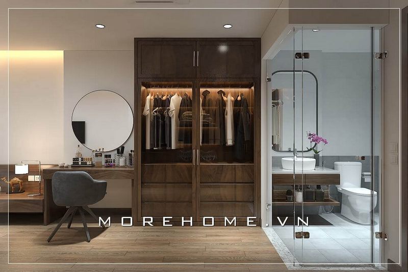 Tủ áo gỗ óc chó mang đến một phong cách hiện đại, kết hợp với cánh kính sang trọng để đáp ứng được nhu cầu và công năng của gia chủ.