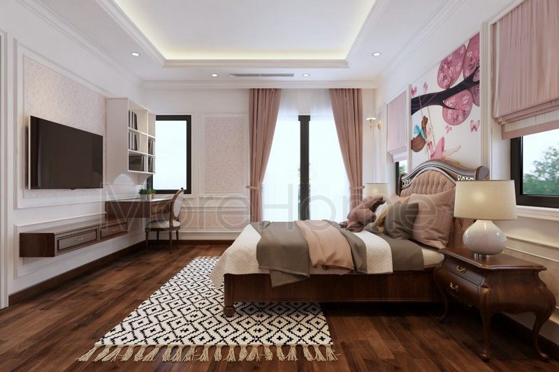 Xu hướng thịnh hành trong năm nay là thiết kế phòng ngủ theo phong cách tân cổ điển. Điểm nổi bật của nó là sự tinh tế và hài hòa trong cách bố trí và sắp xếp hài hòa của các món đồ nội thất.