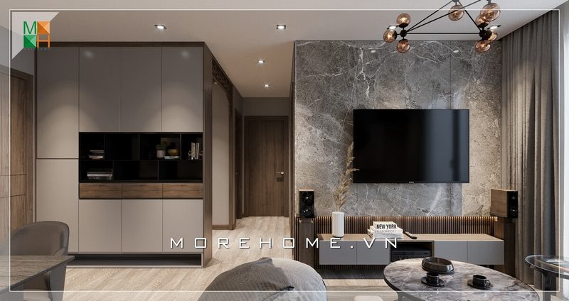 Chọn phong cách thiết kế hiện đại để tạo ra một không gian sống thoải mái, vuông vức và gọn gàng trong căn hộ chung cư nhỏ gọn. Mỗi đồ nội thất sẽ được lựa chọn với sự tinh tế, gọn gàng.